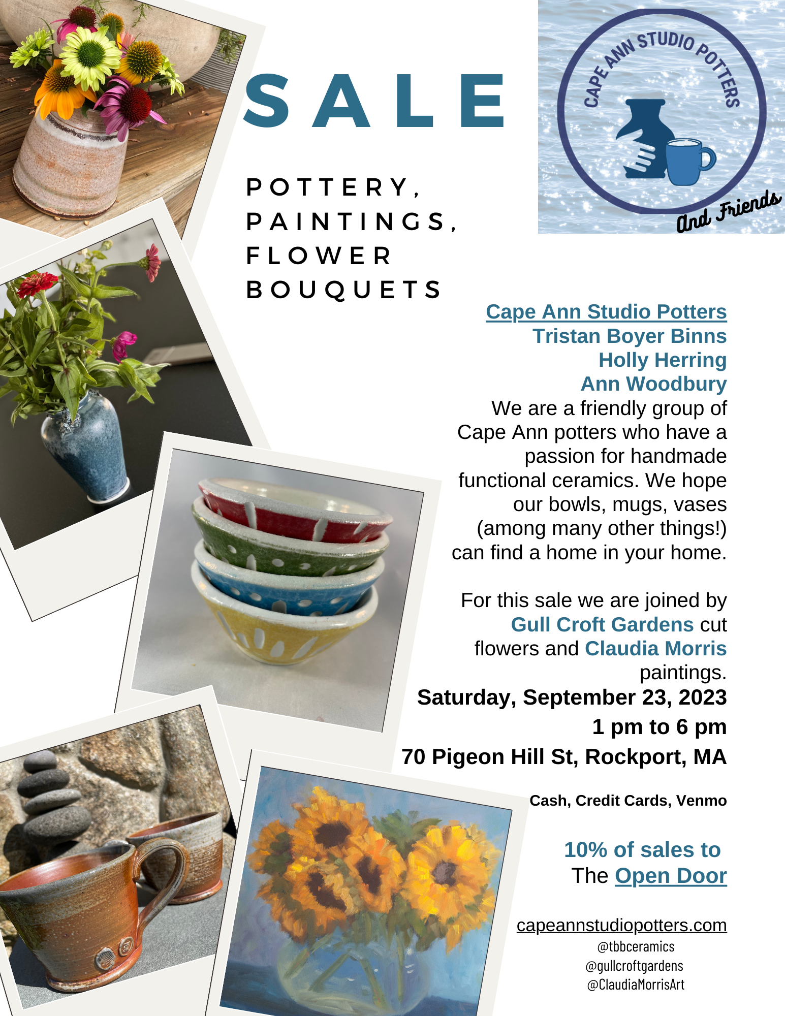 Sale Event! September 23, 2023, 1-6pm, 70 Pigeon Hill St., Rockport MA (click on image to download PDF version)